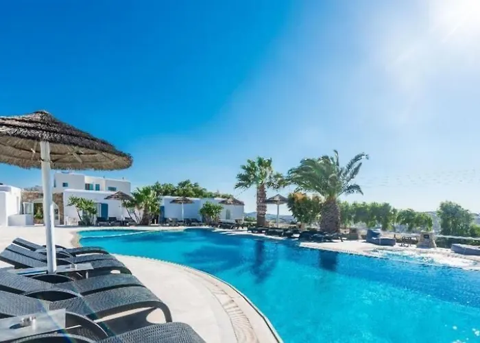The hotel has a wonderful setting approximately 10 minutes by car from Matogianni, while natural sights like the sand Kapari Beach are around 25 minutes' walk away. Monastery of Paleokastro is within 6 km of the elegant Giannoulaki Mykonos Town, and Mykonos airport is 5 km away. The nearby cultural attractions include the Lena's House museum, which is about a 30-minute walk from this suburban property. The nearest bus stop is public, located a mere 550 metres away.